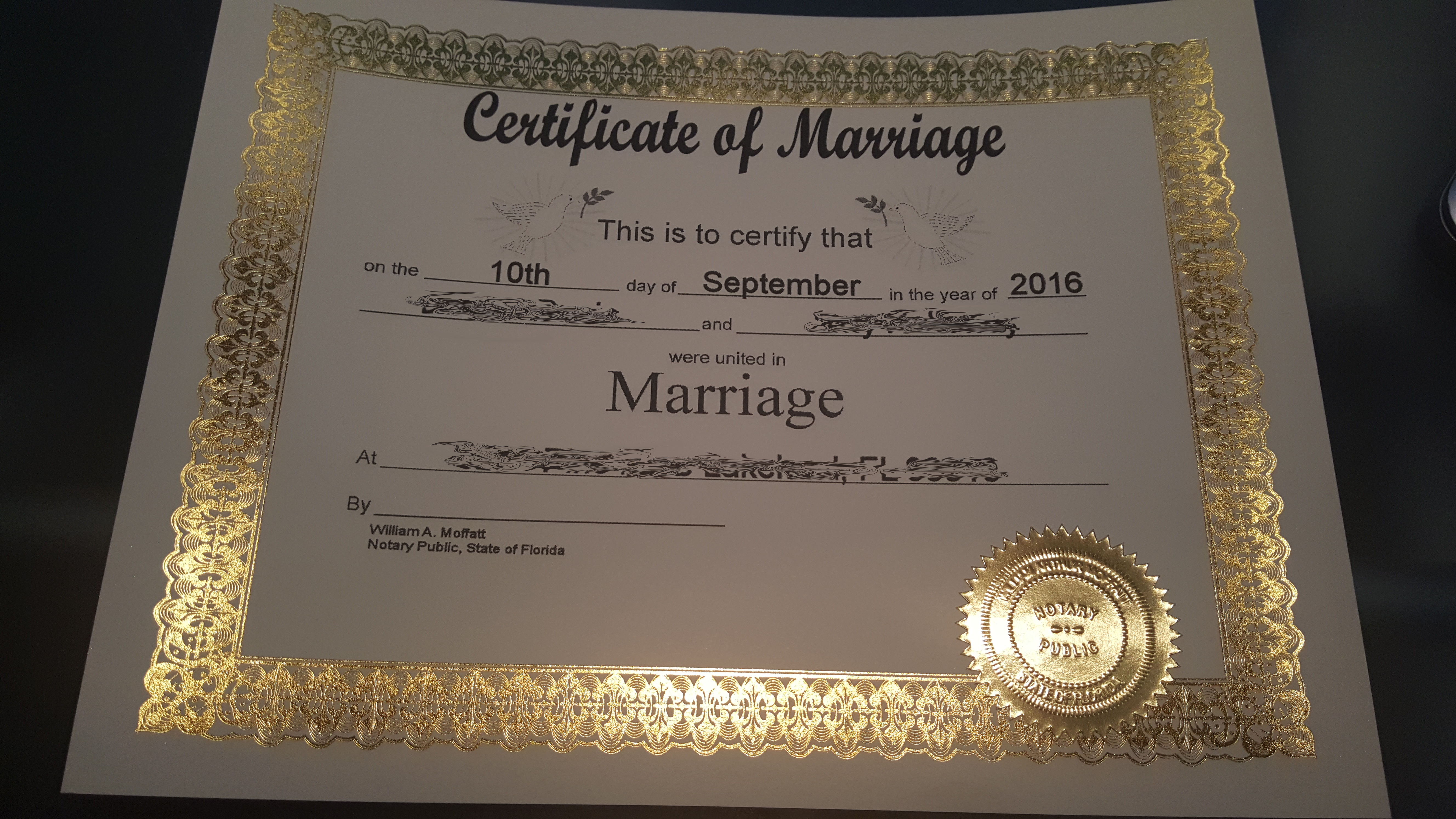 Additionally, I provide a gold embossed certificate of the marriage for you to keep and cherish. (see seal image to the right). This is included in my $80 fee! You may also see a sample certificate HERE.